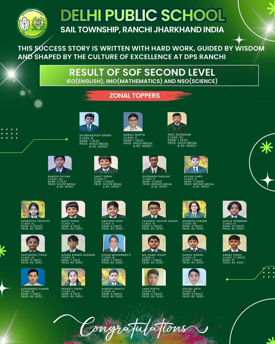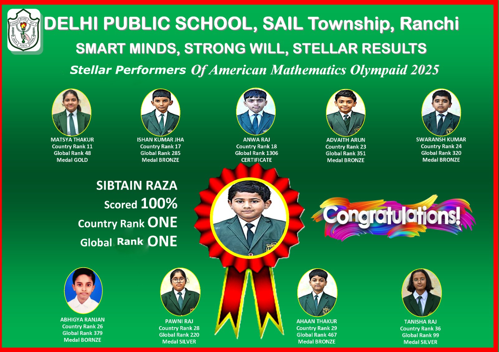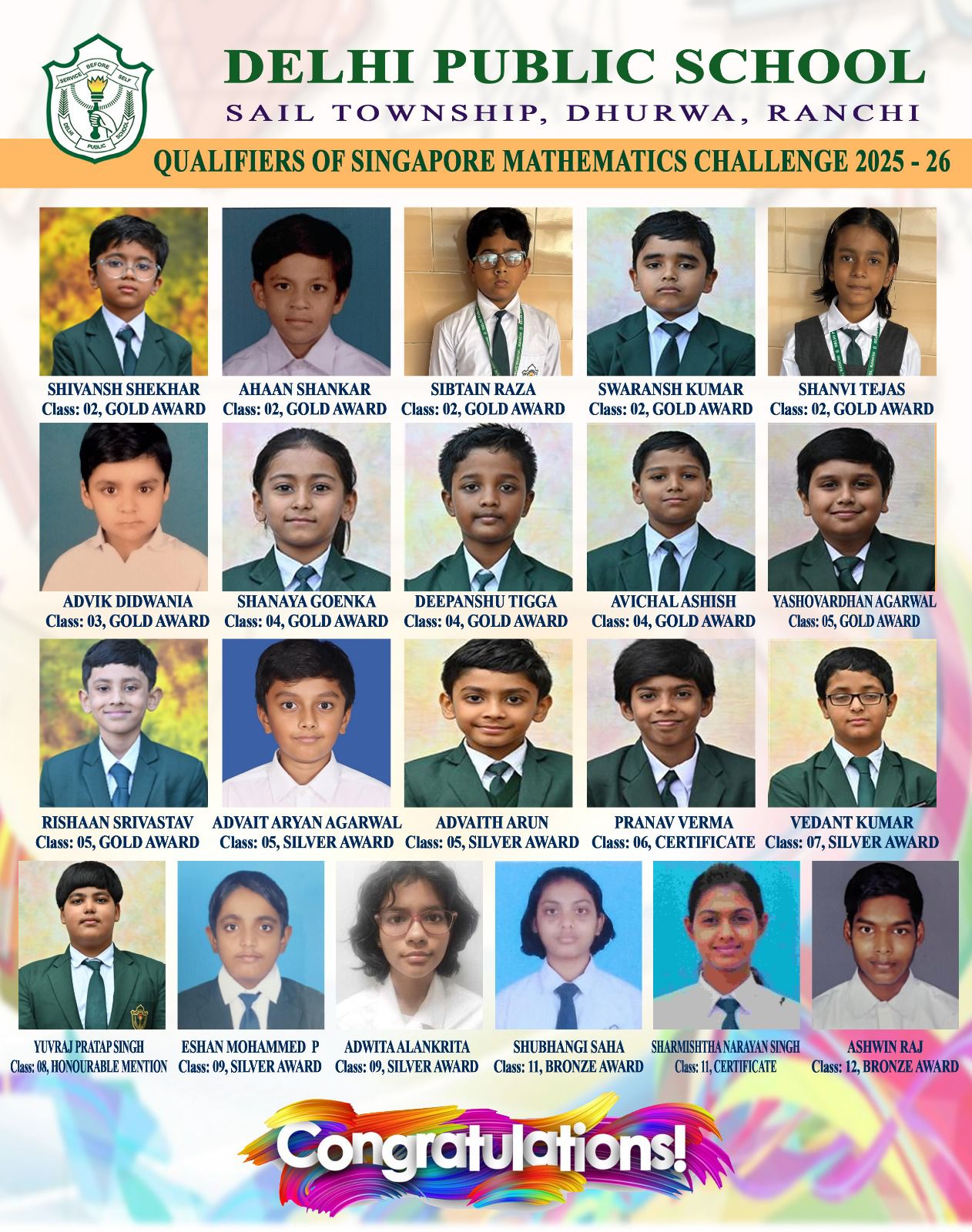 Along with him, several other students from DPS Ranchi also qualified in this esteemed Olympiad, showcasing the school’s strong foundation in mathematical learning. The qualifiers include, Swaransh Kumar, Ishan Kumar Jha, Anaw Raj, Advaith Arun, Ahaan Thakur, Abhigya Ranjan, Pawni Raj, Tanisha Raj, and Matsya Thakur.