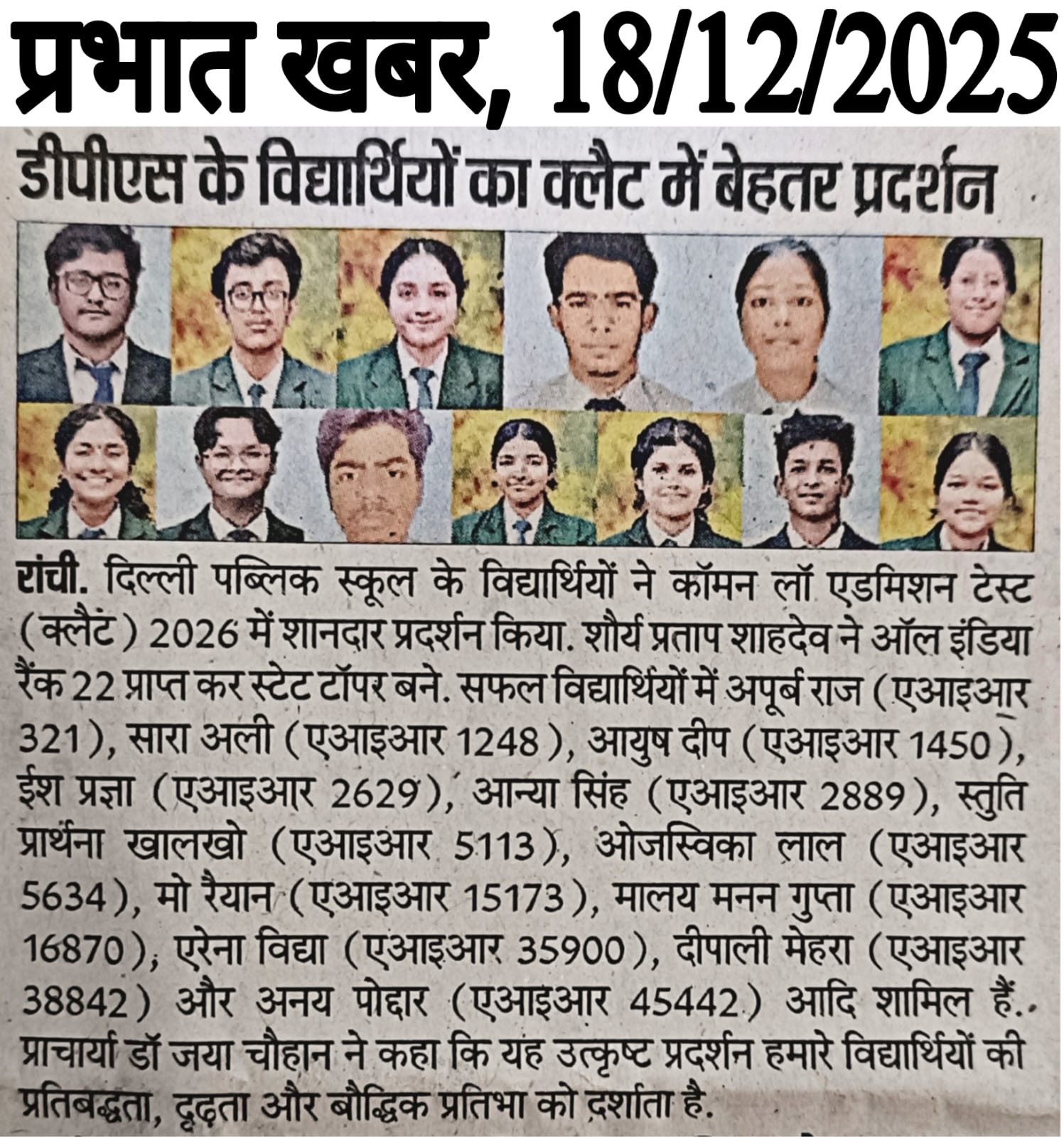 Together, let us write a new chapter in the remarkable story of DPS Ranchi—one that reflects hope, harmony, and high achievement. Our theme for this year is: Promoting Excellence Through Determination And Hard Work. I thank you for your relentless support and look forward to working in conjunction.