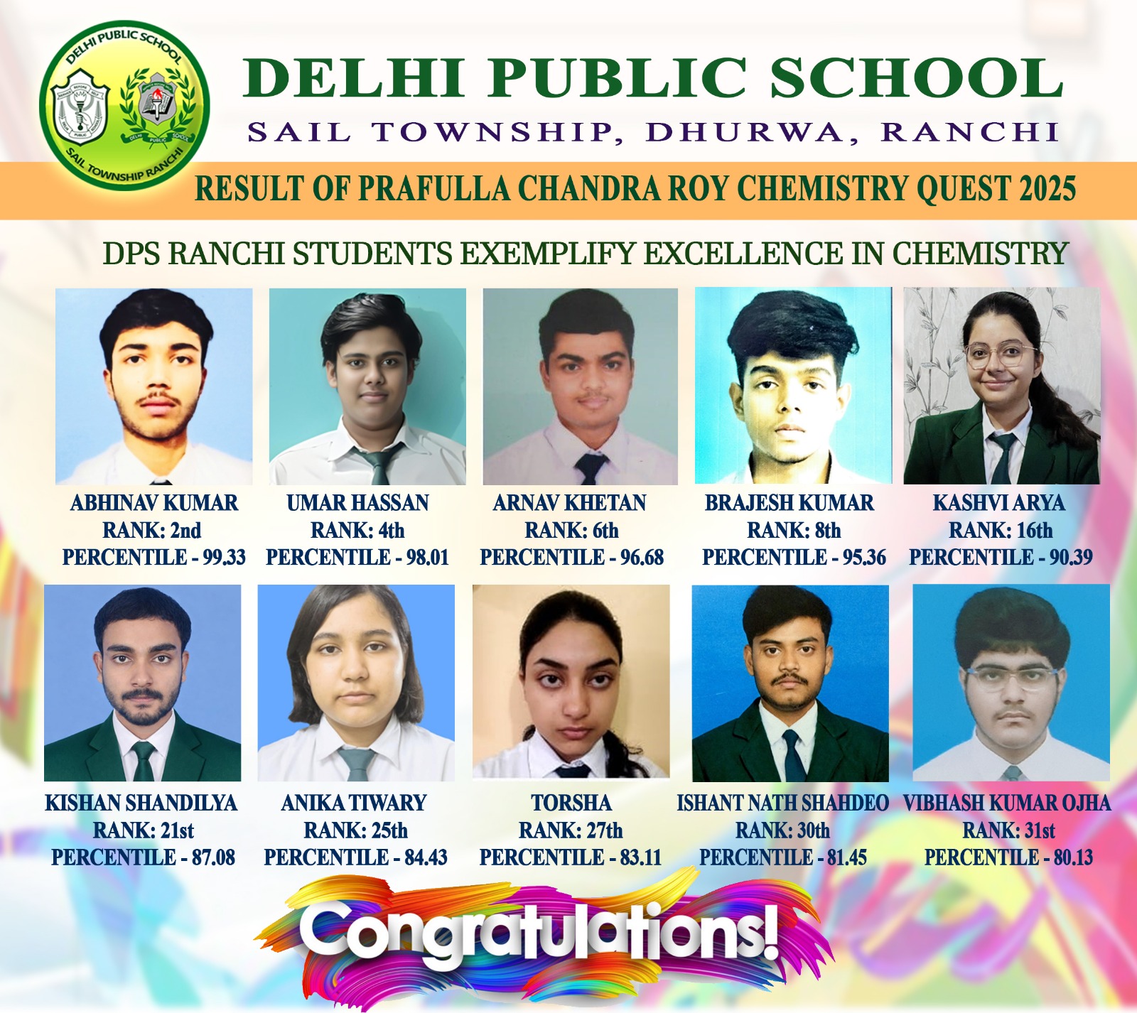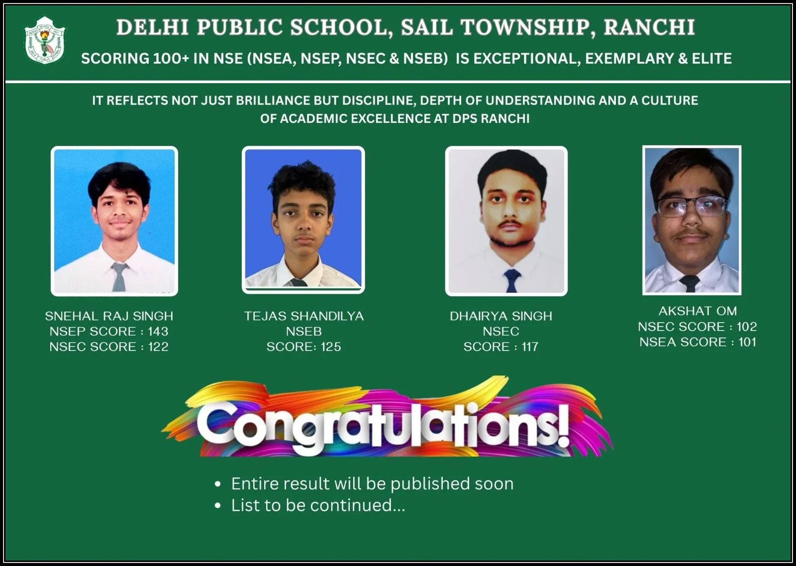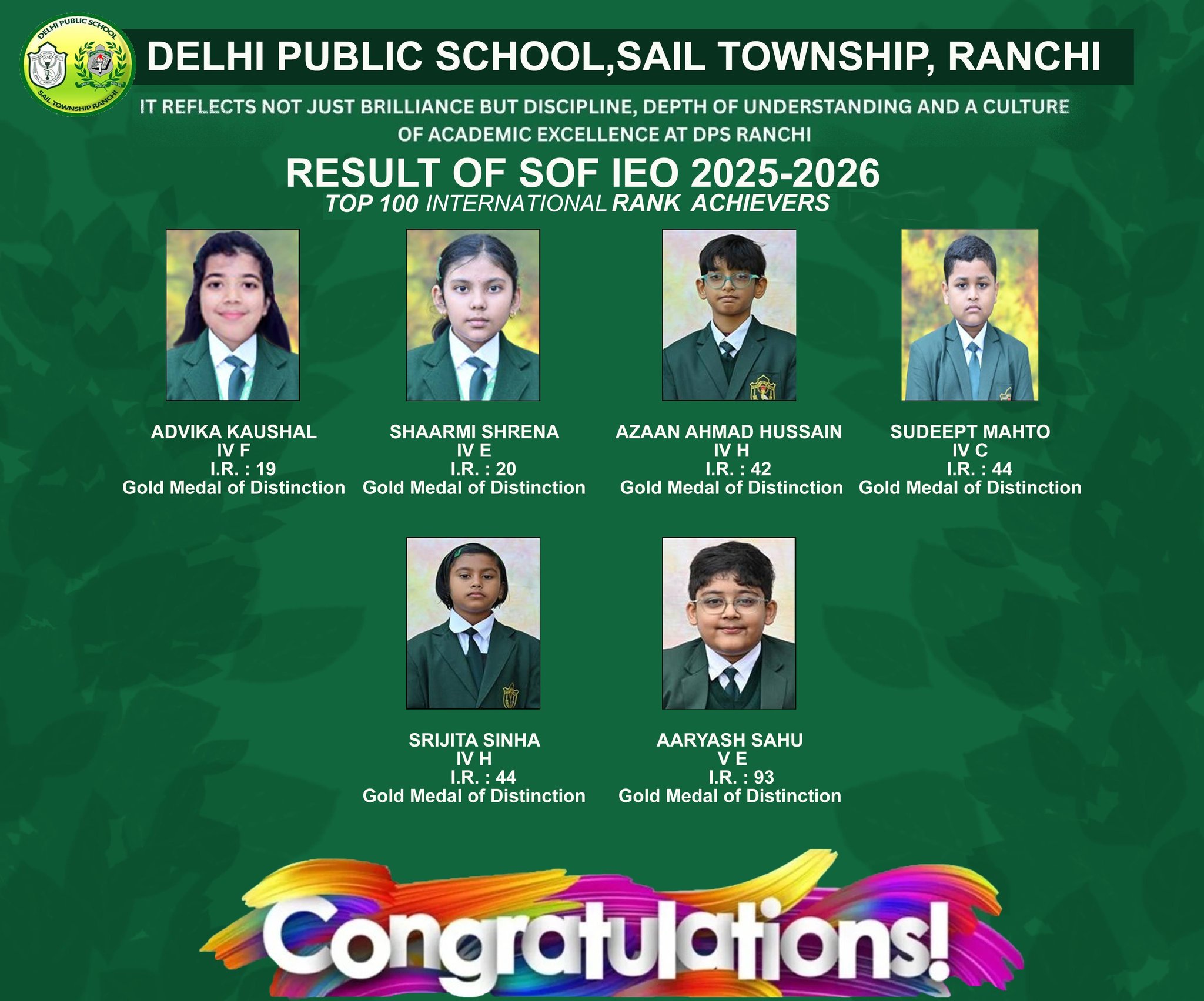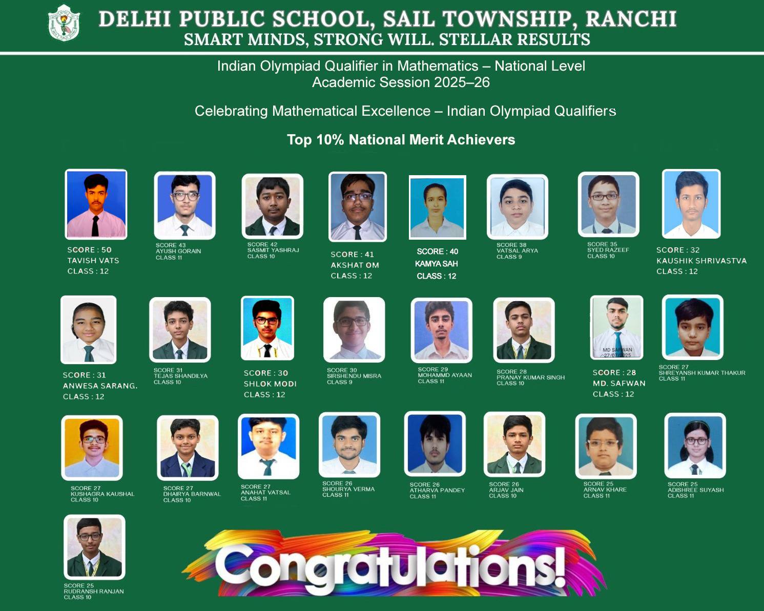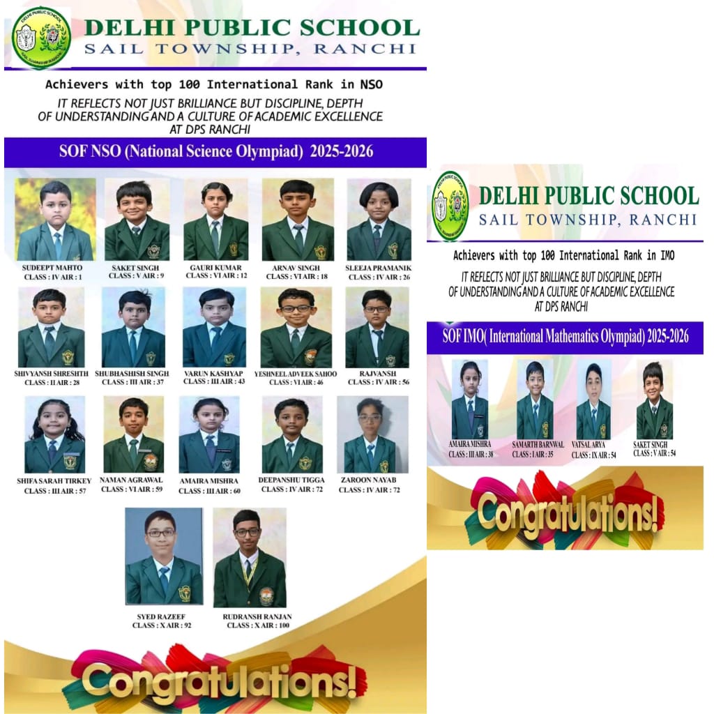 Along with him, several other students from DPS Ranchi also qualified in this esteemed Olympiad, showcasing the school’s strong foundation in mathematical learning. The qualifiers include, Swaransh Kumar, Ishan Kumar Jha, Anaw Raj, Advaith Arun, Ahaan Thakur, Abhigya Ranjan, Pawni Raj, Tanisha Raj, and Matsya Thakur.