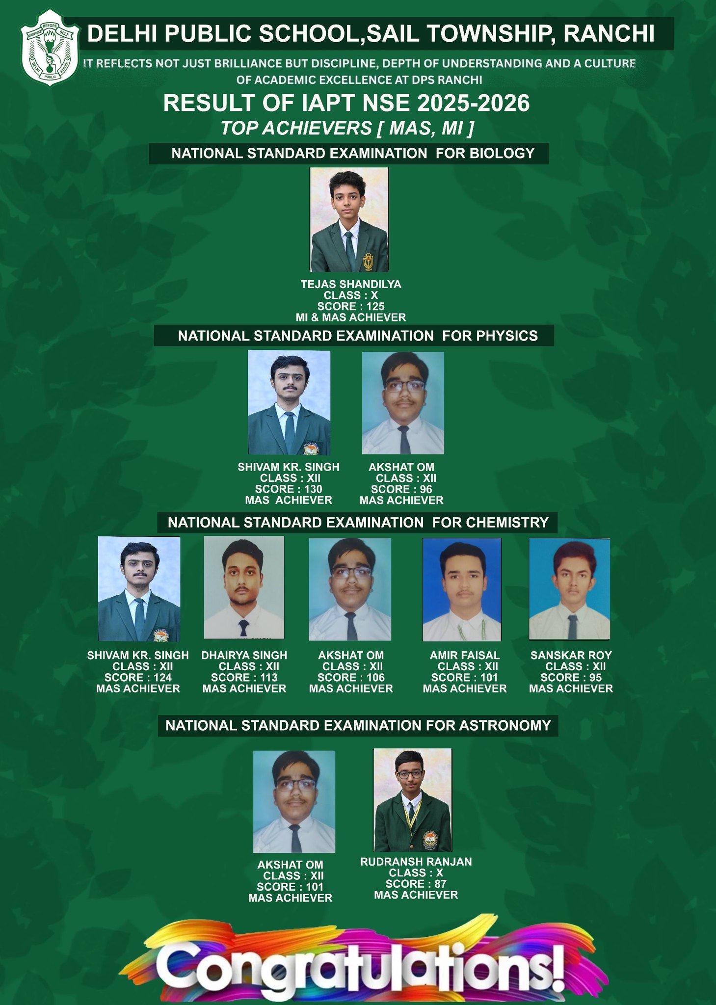 It is worth mentioning that AMO was organised for the first time at DPS Ranchi, and this remarkable success has been achieved under the able guidance and encouragement of Principal Dr. Jaya Chauhan, whose vision continues to inspire students towards global academic excellence.