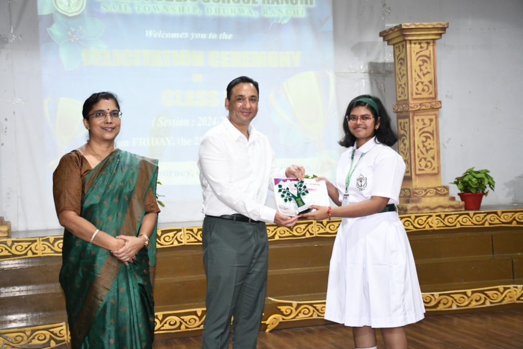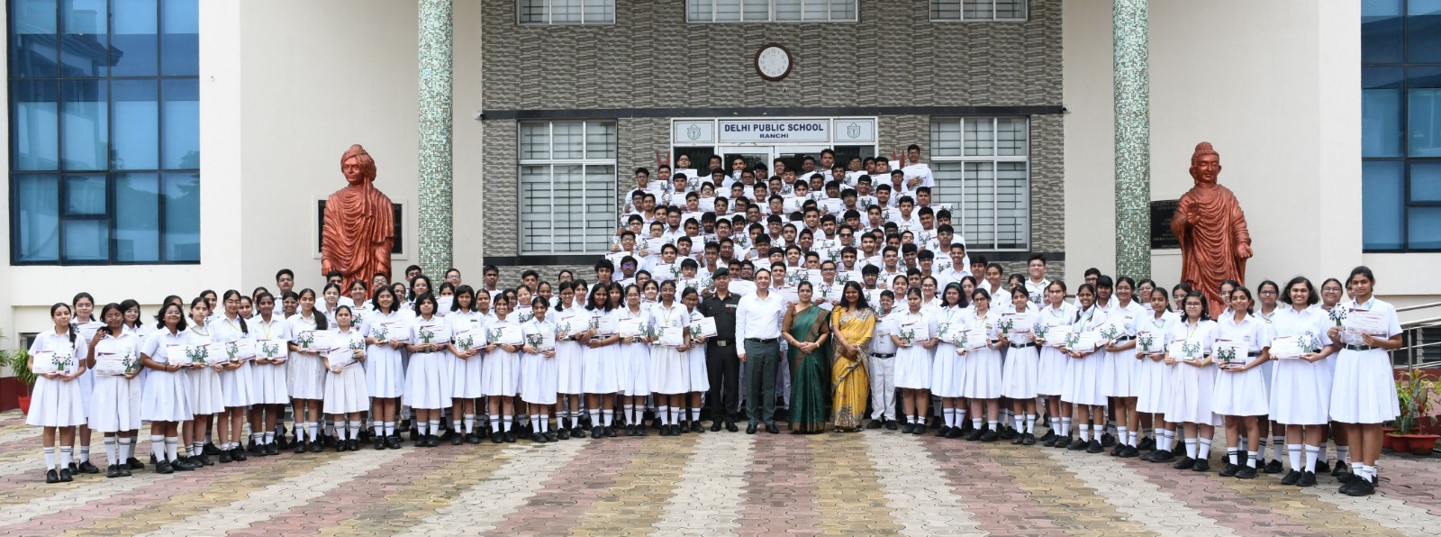 Description: In a spirited celebration of excellence and perseverance, Delhi Public School Ranchi hosted a spectacular Felicitation Ceremony at the Vivekananda Auditorium to honour its outstanding CBSE Class X achievers of the 2025 batch. The event radiated pride and joy as students, parents and teachers gathered to commemorate the impressive academic milestones reached by the young Dipsites. The event was graced by Smt. Kiran Kumari Pasi (IAS), Director of Social Welfare and Director of Animal Husbandry, Jharkhand, Shri Narendra Kumar Singh, IG (HR), Jharkhand and Col. Santosh Kumar, CO, 3 Jharkhand Battalion, National Cadet Corps, Ranchi who presided as distinguished guests. All the dignitaries brought their words of wisdom and encouragement, uplifting the spirits of the young achievers.
