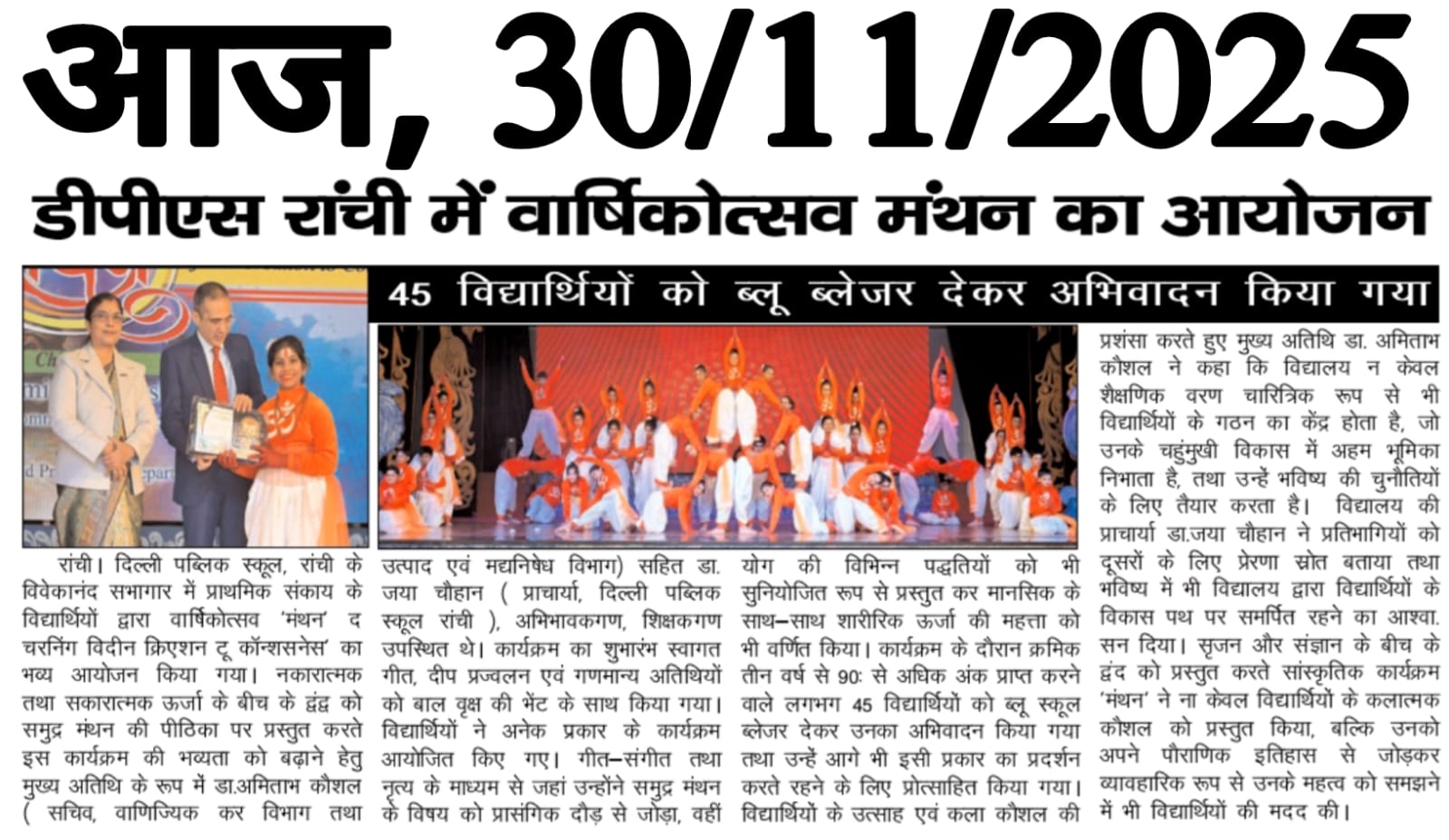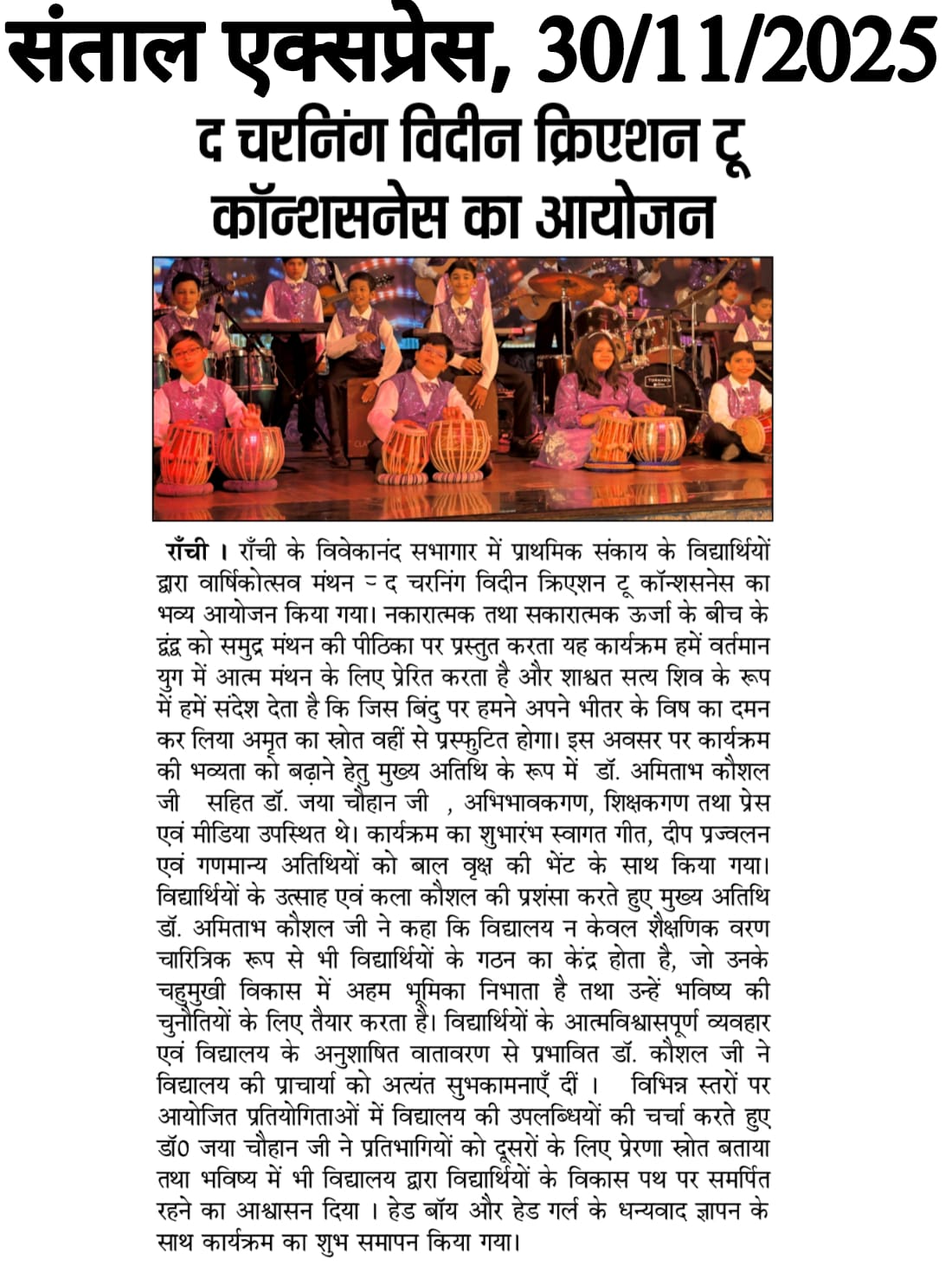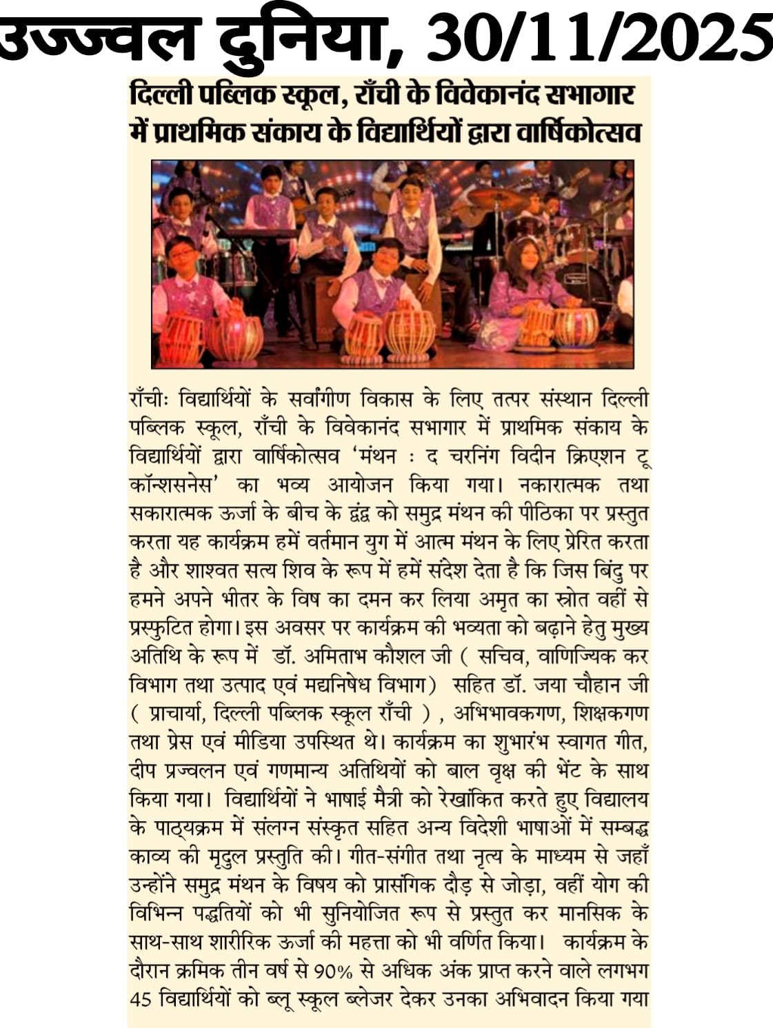Description: DPS RANCHI celebrates Manthan – The Churning Within: From Creation to Consciousness : Annual Function of Classes III–V