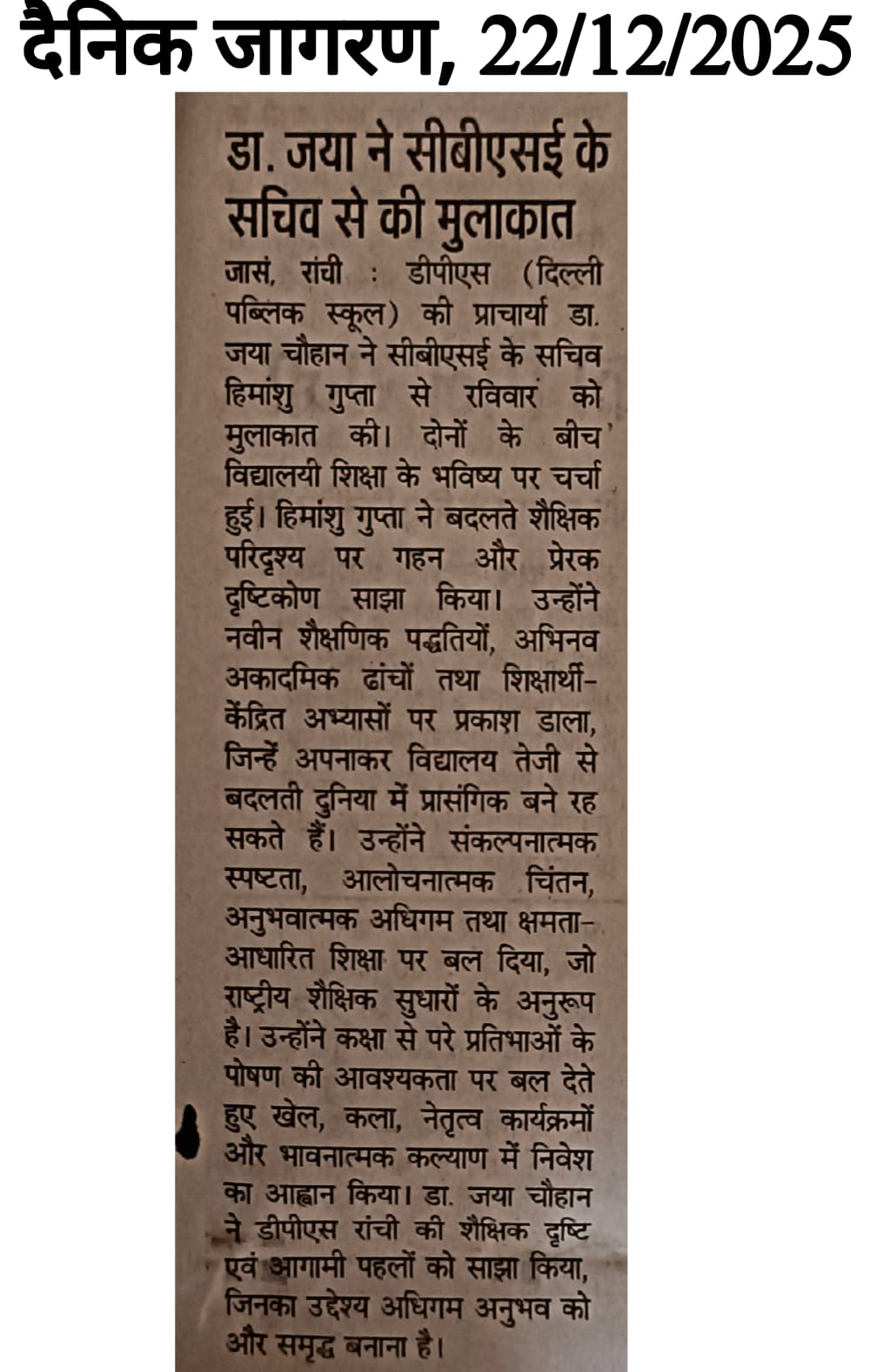 DPS Ranchi Engages in Visionary Dialogue on the Future of School Education