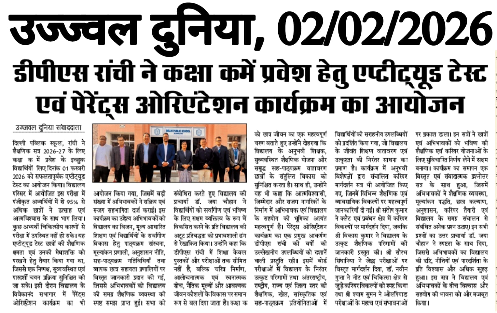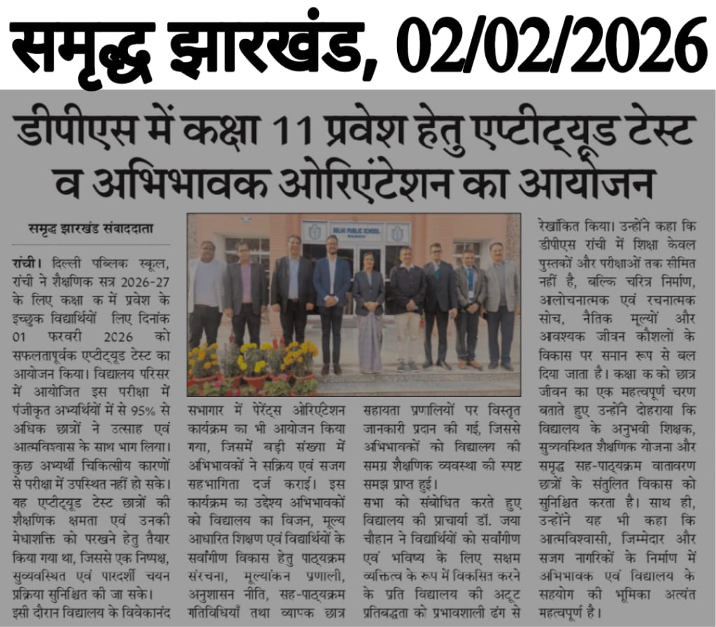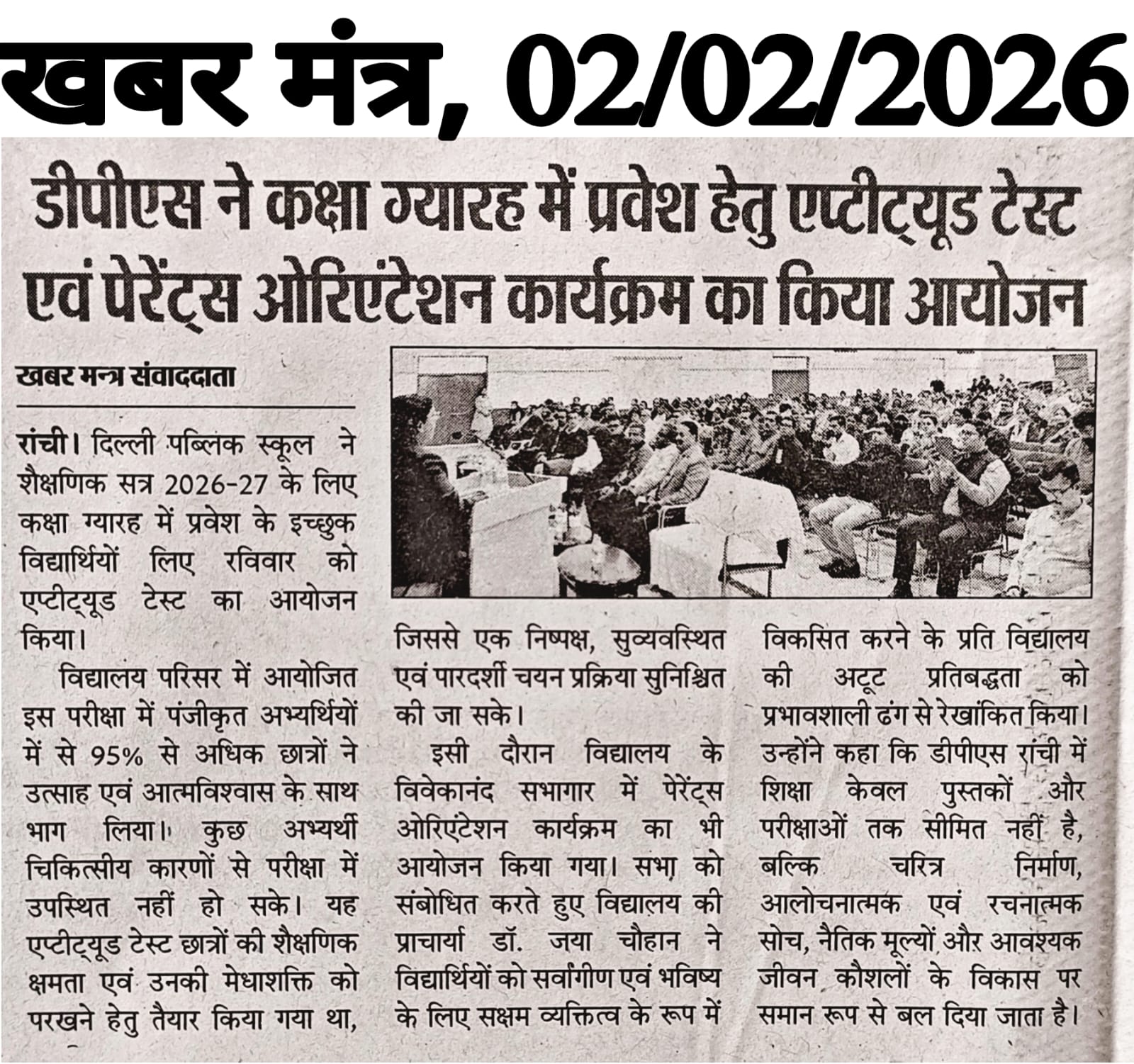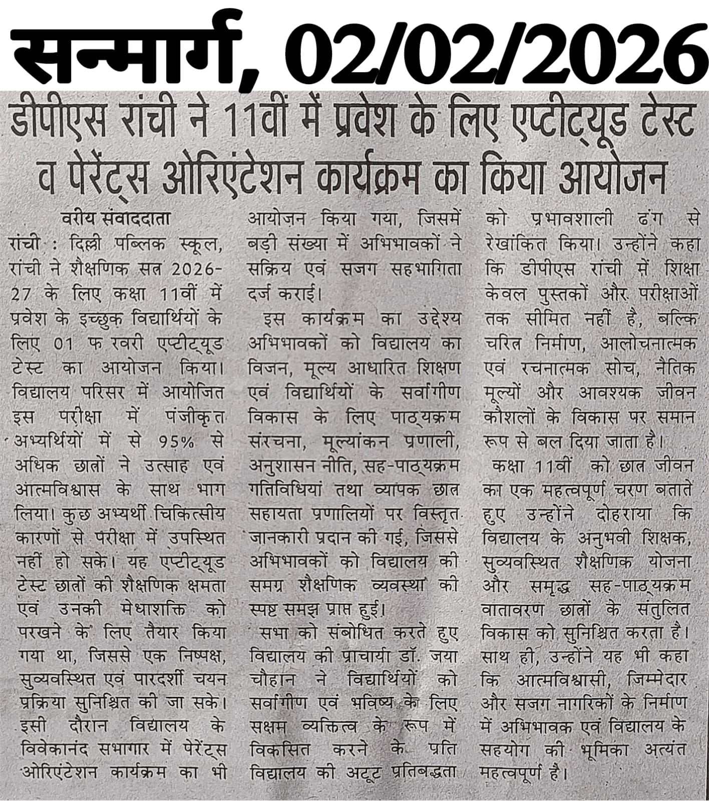 Description: DPS Ranchi Hosted Aptitude Test for Aspiring Students and Parents’ Orientation Programme