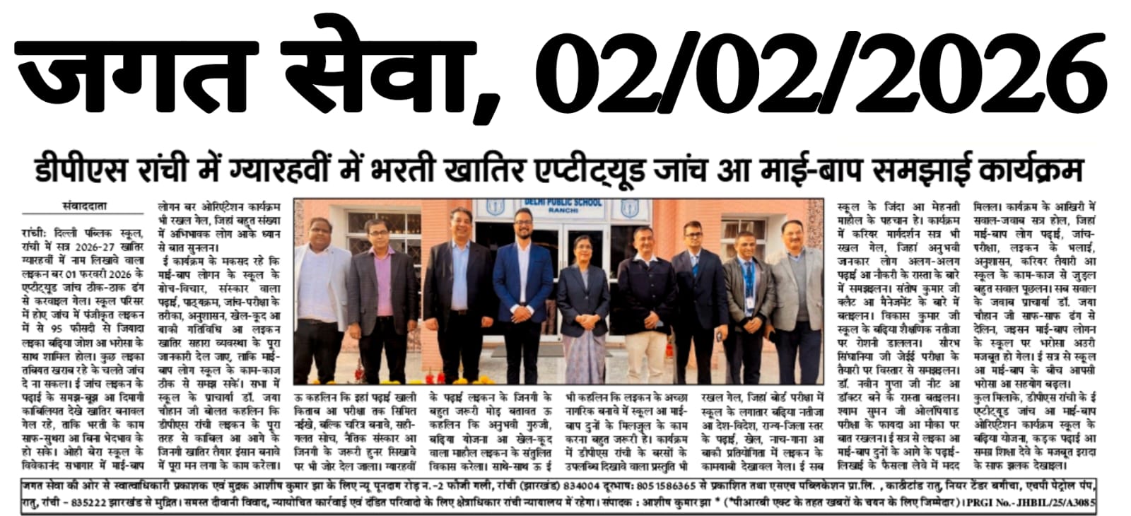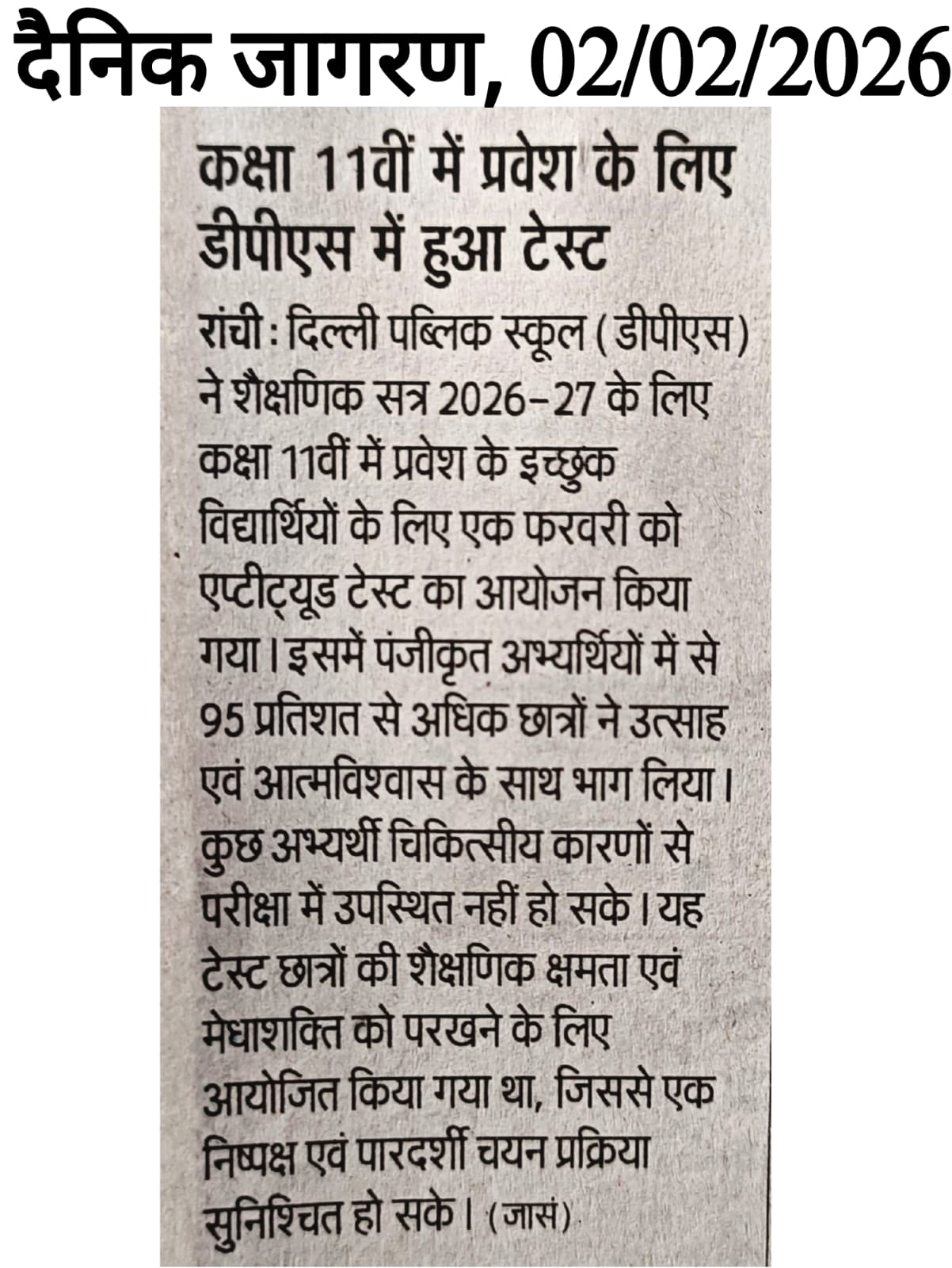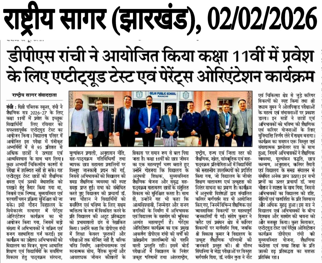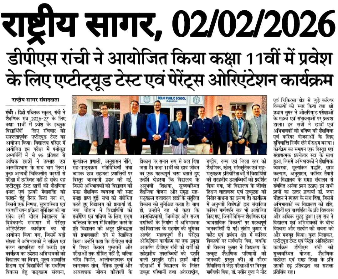 Description: DPS Ranchi Hosted Aptitude Test for Aspiring Students and Parents’ Orientation Programme