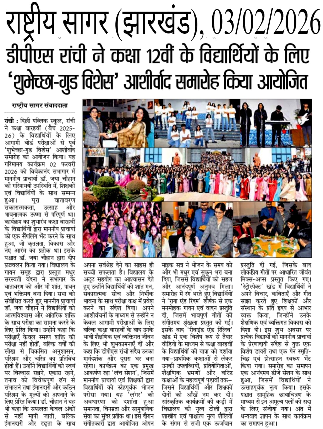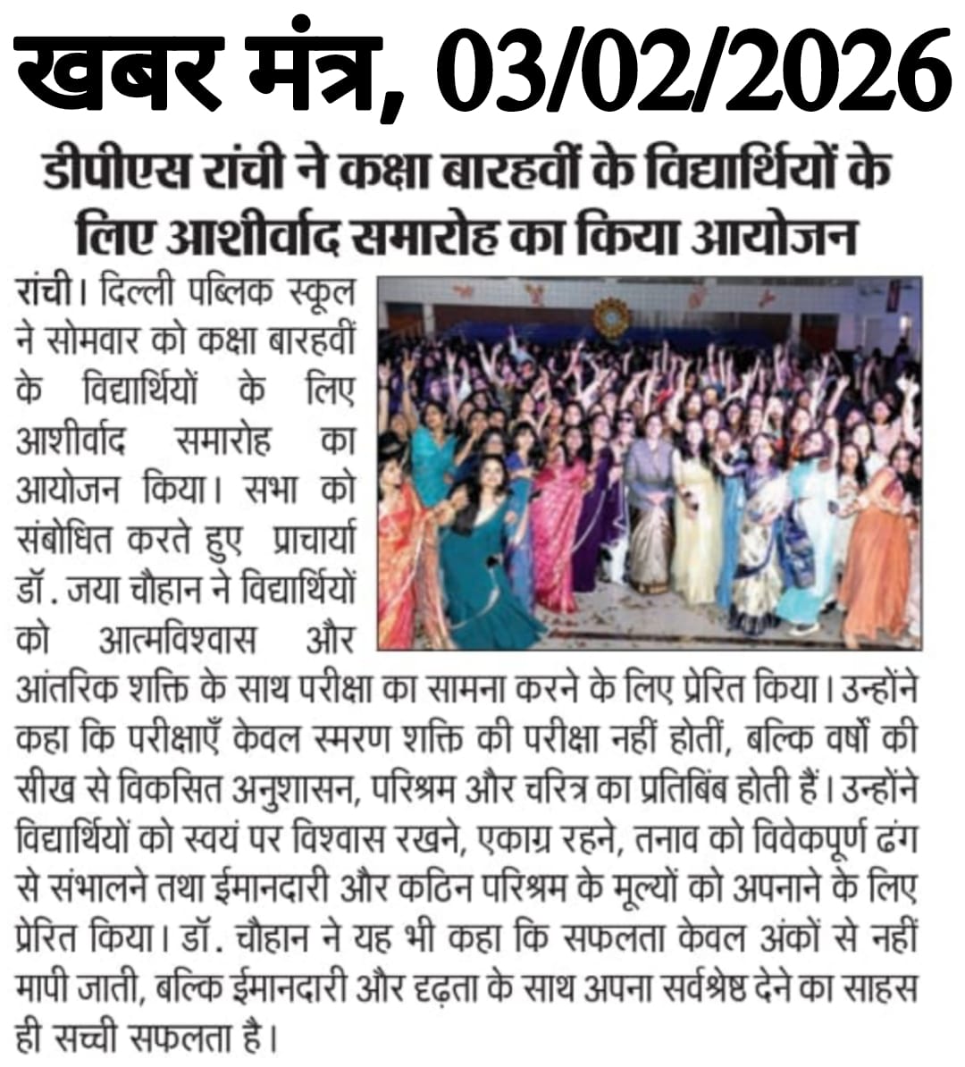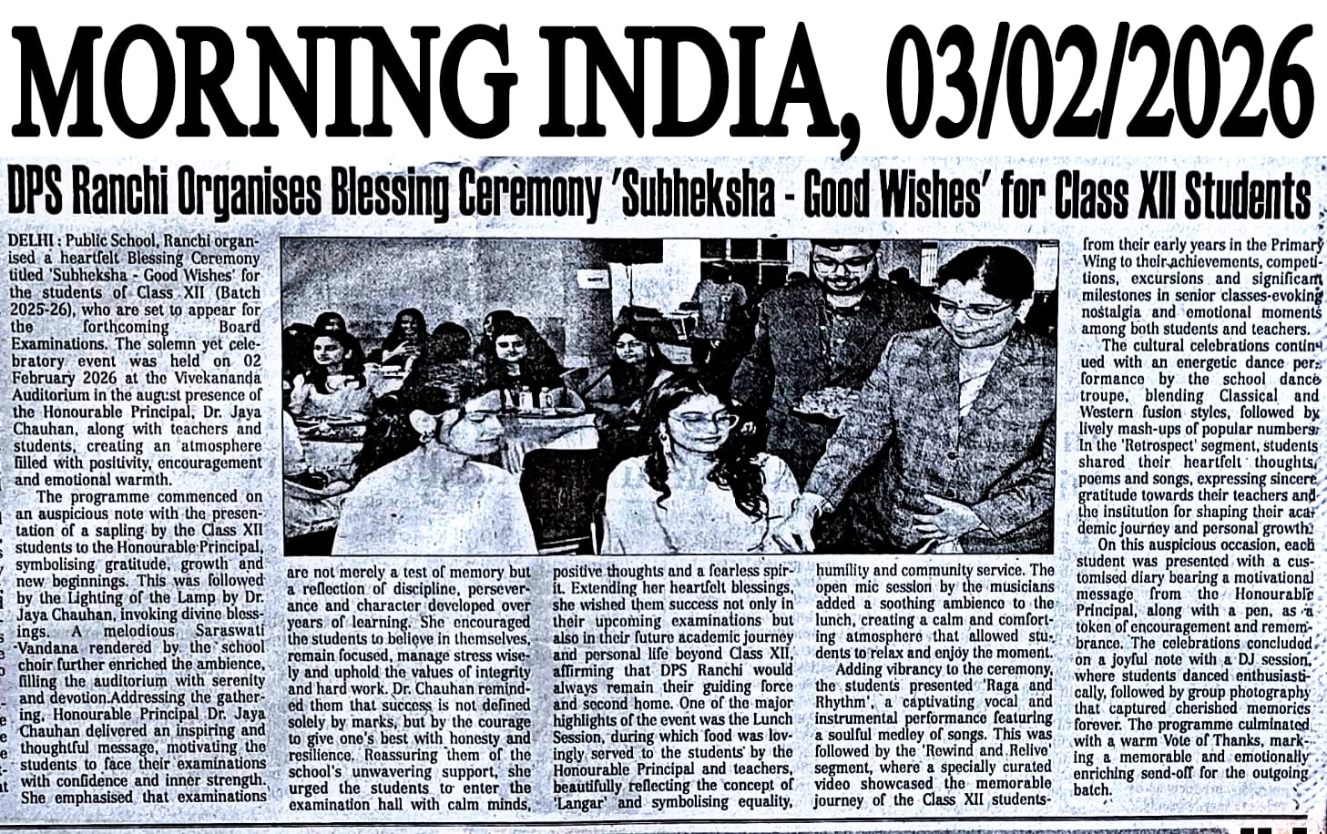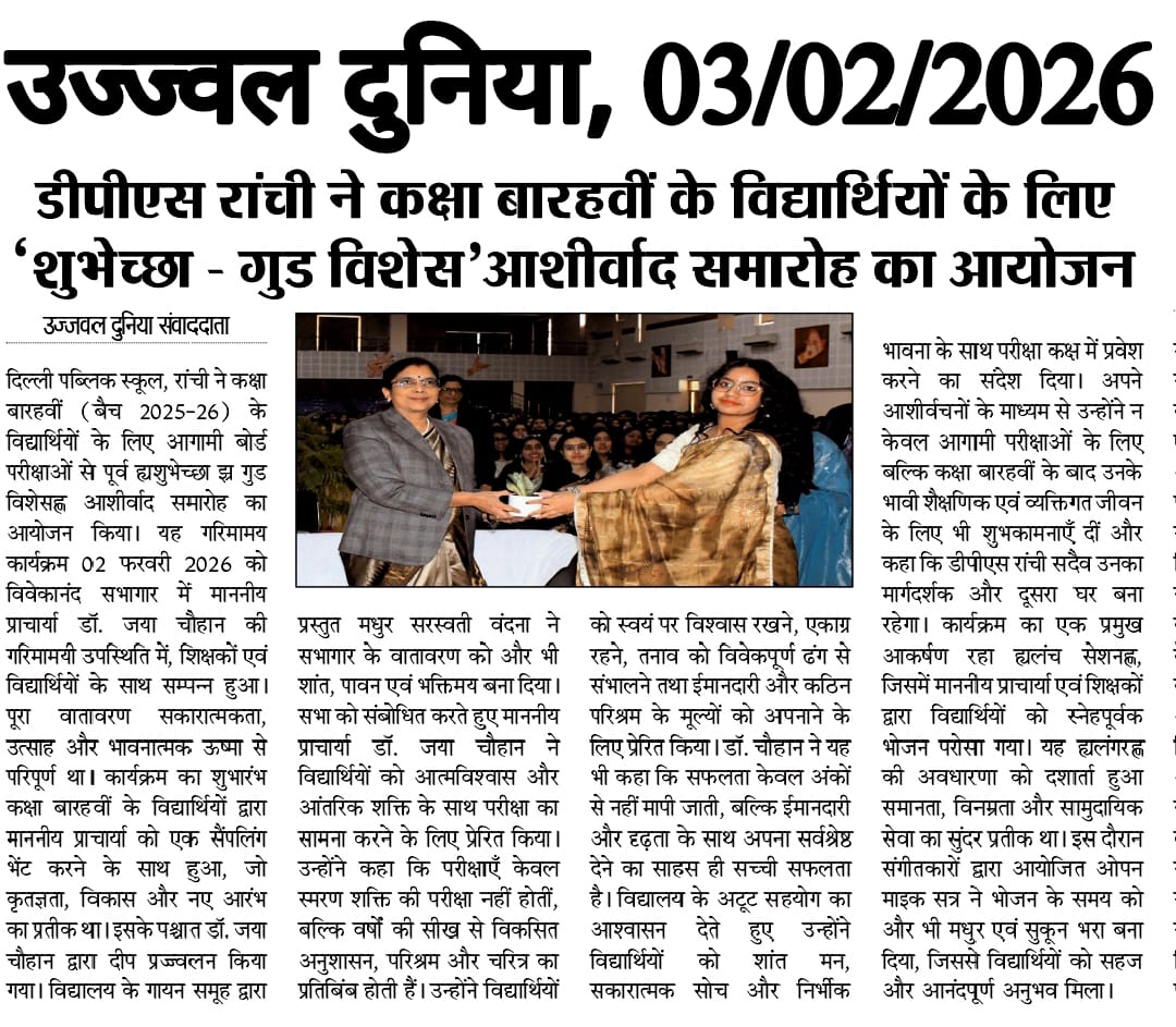 DPS Ranchi Organised Blessing Ceremony ‘Subheksha – Good Wishes’ for Class XII Students
