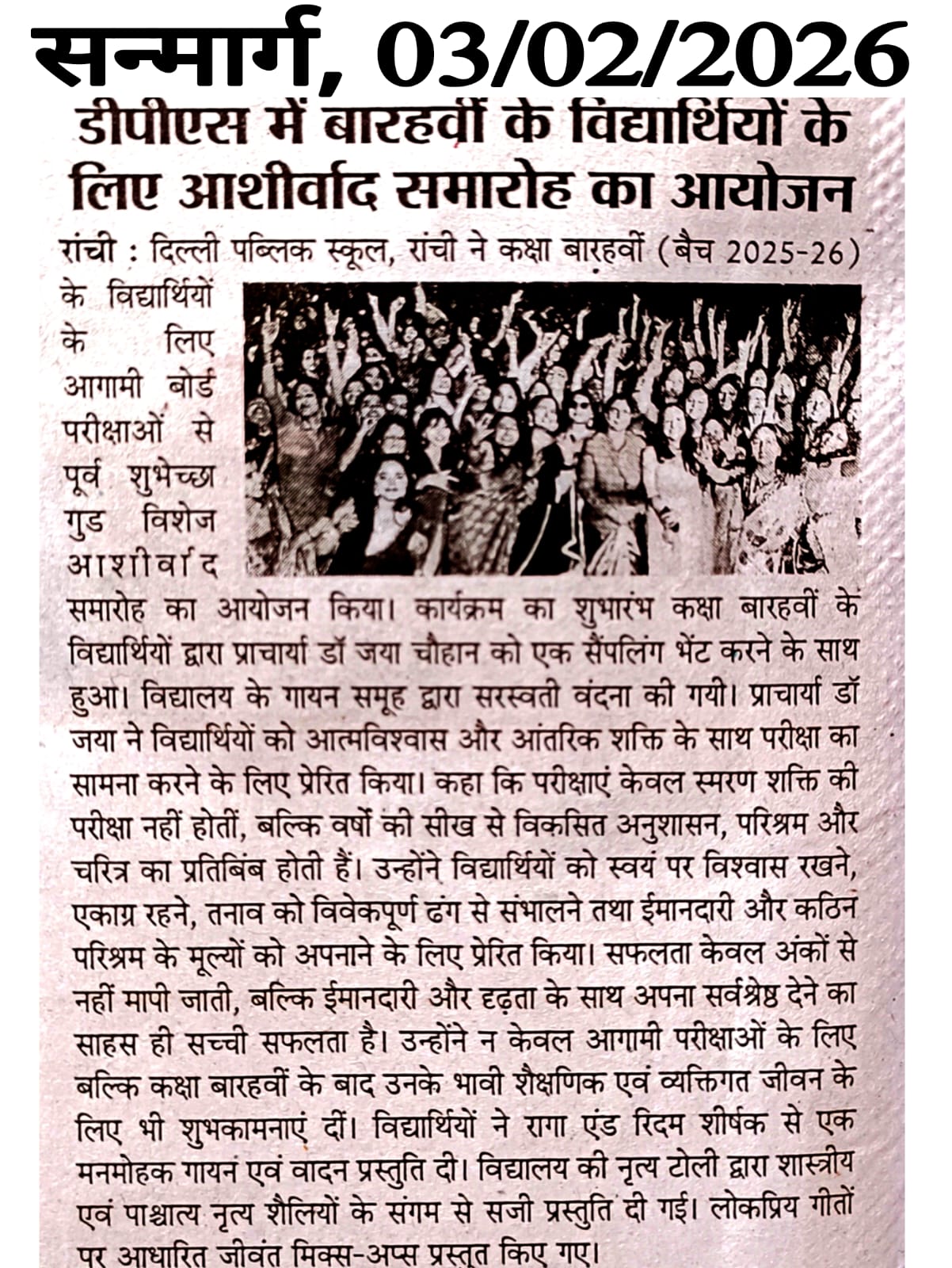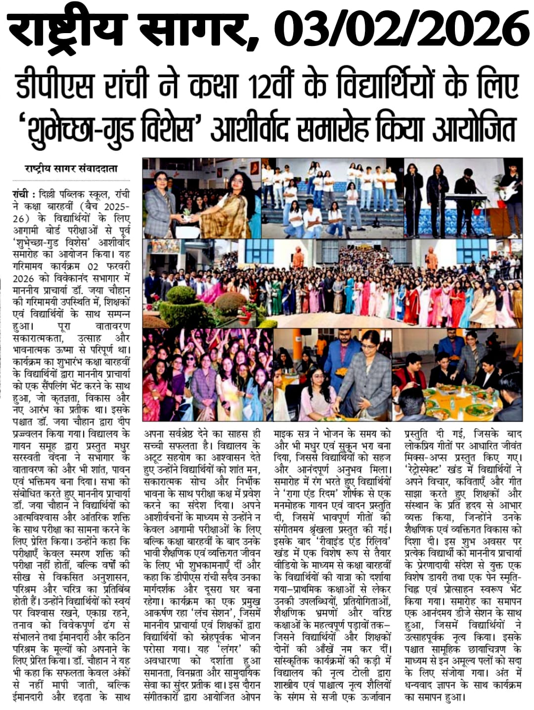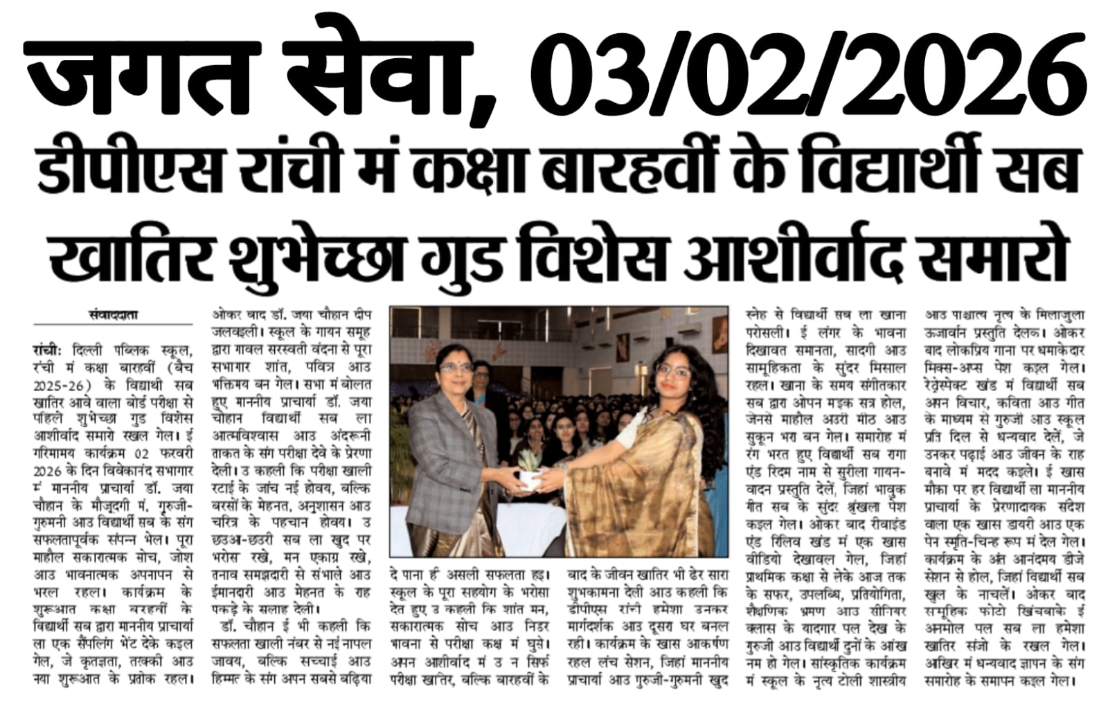 DPS Ranchi Organised Blessing Ceremony ‘Subheksha – Good Wishes’ for Class XII Students