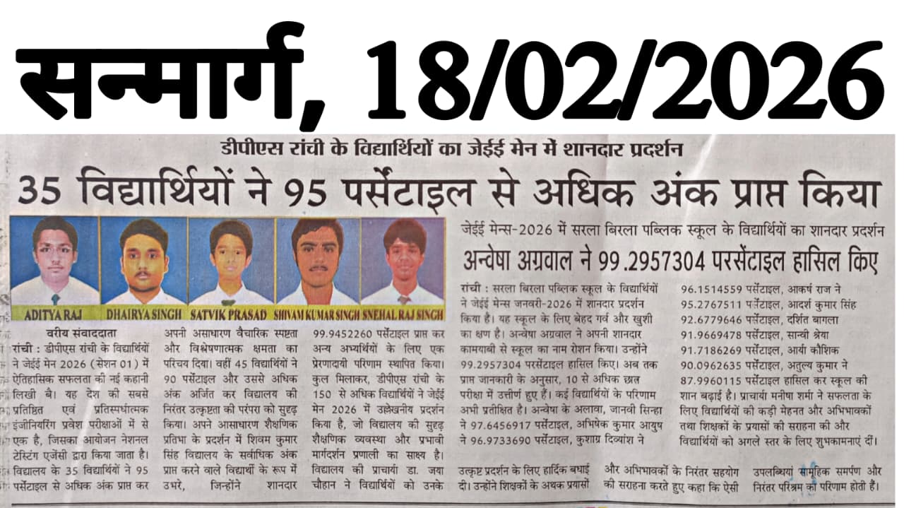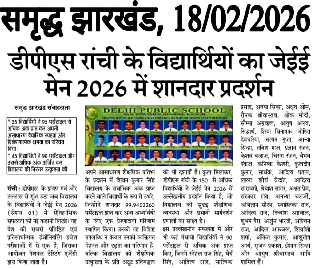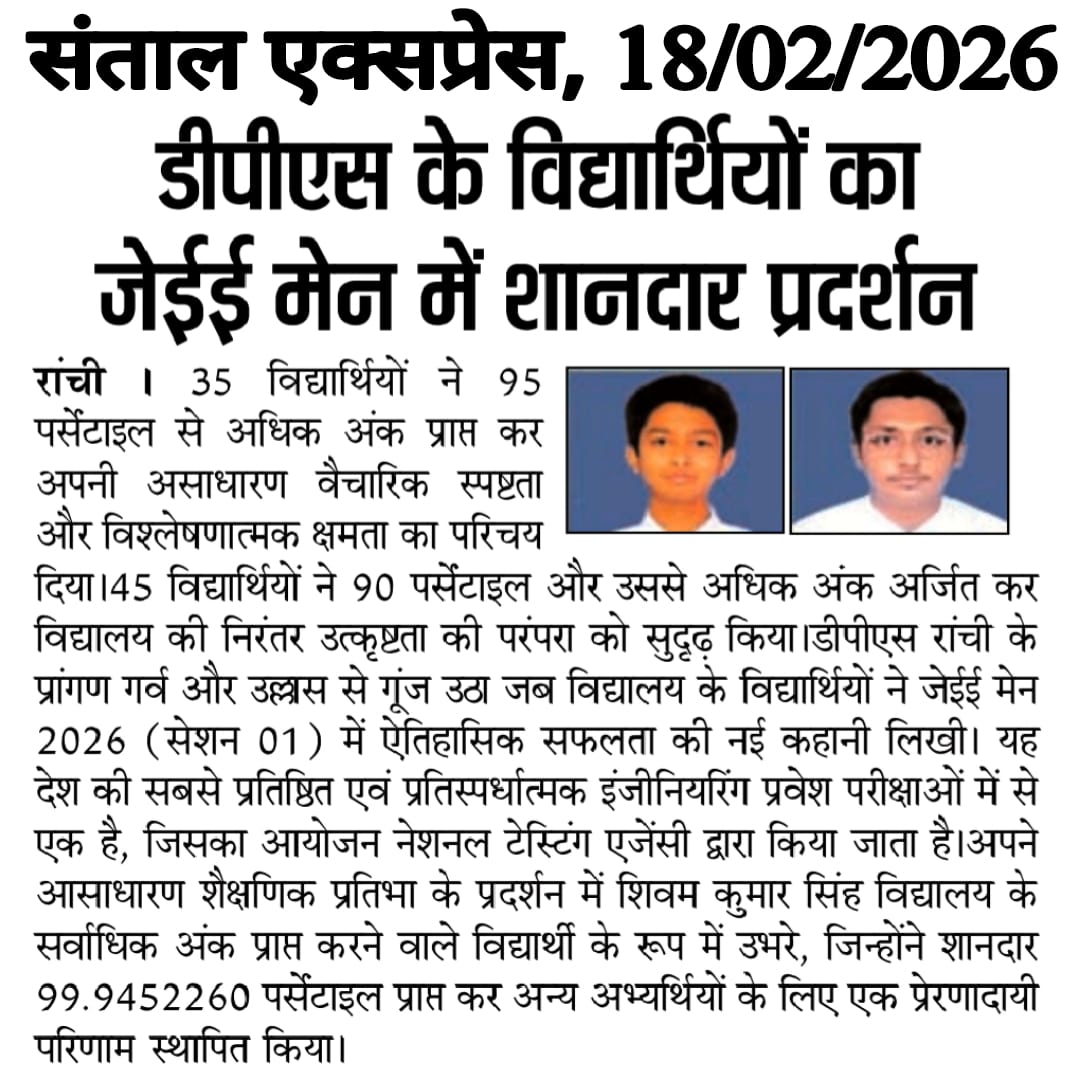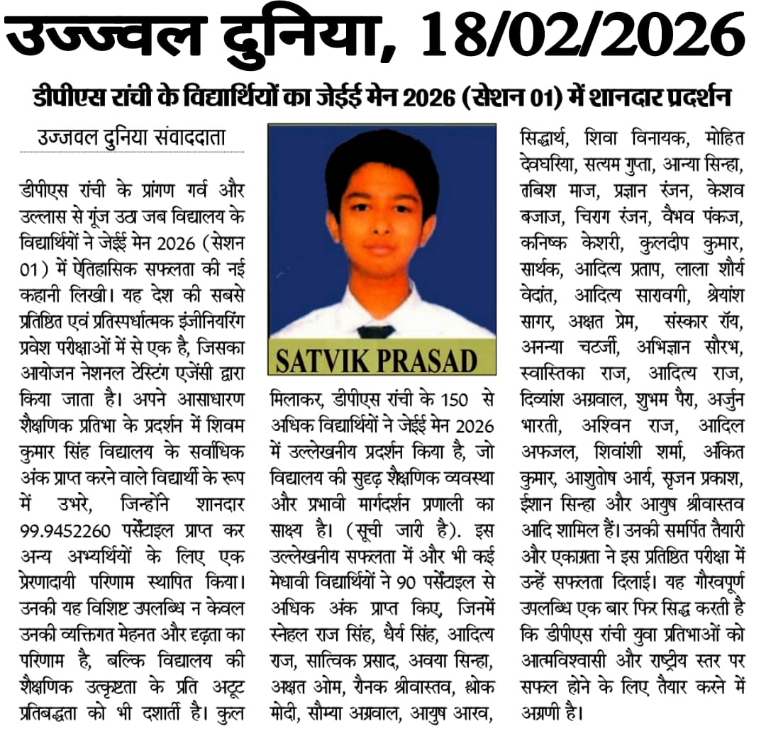 DPS Ranchi Shines Bright in JEE Main 2026 (Session 01) with Stellar Performances