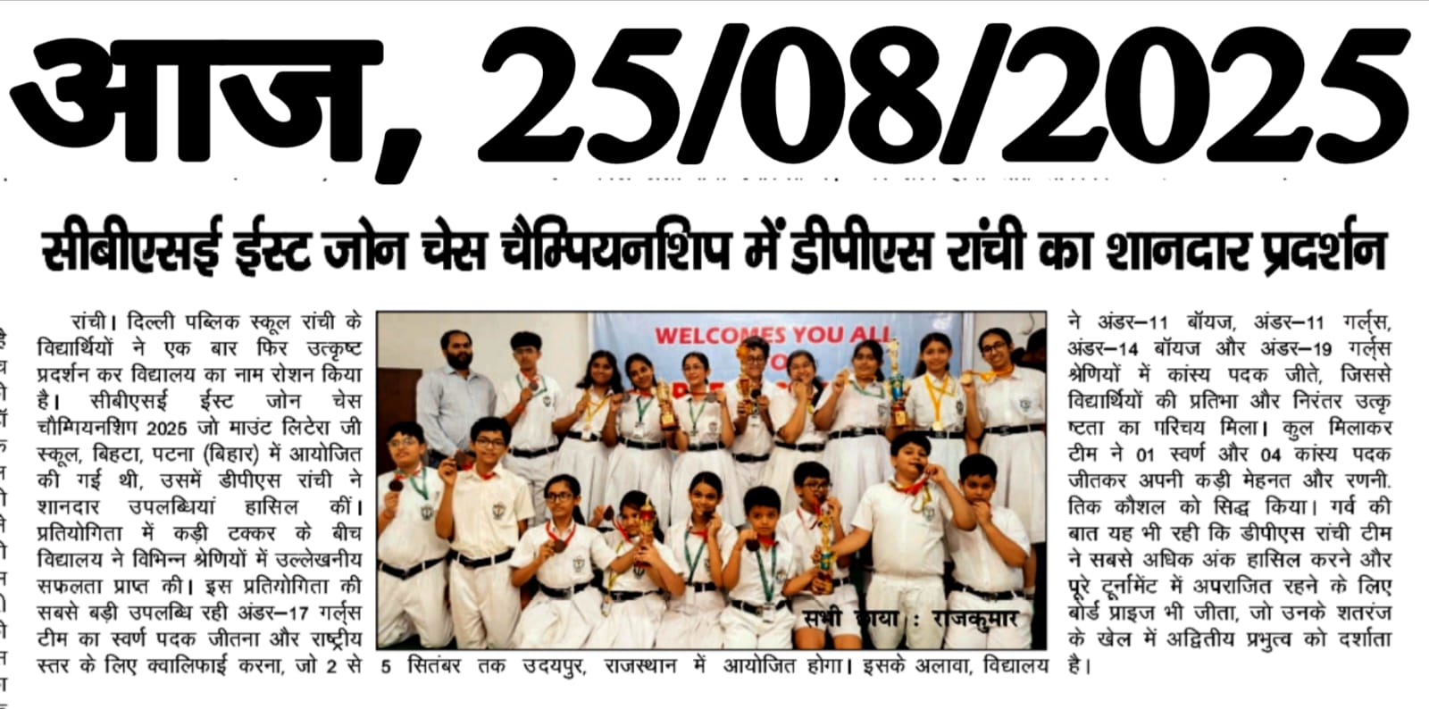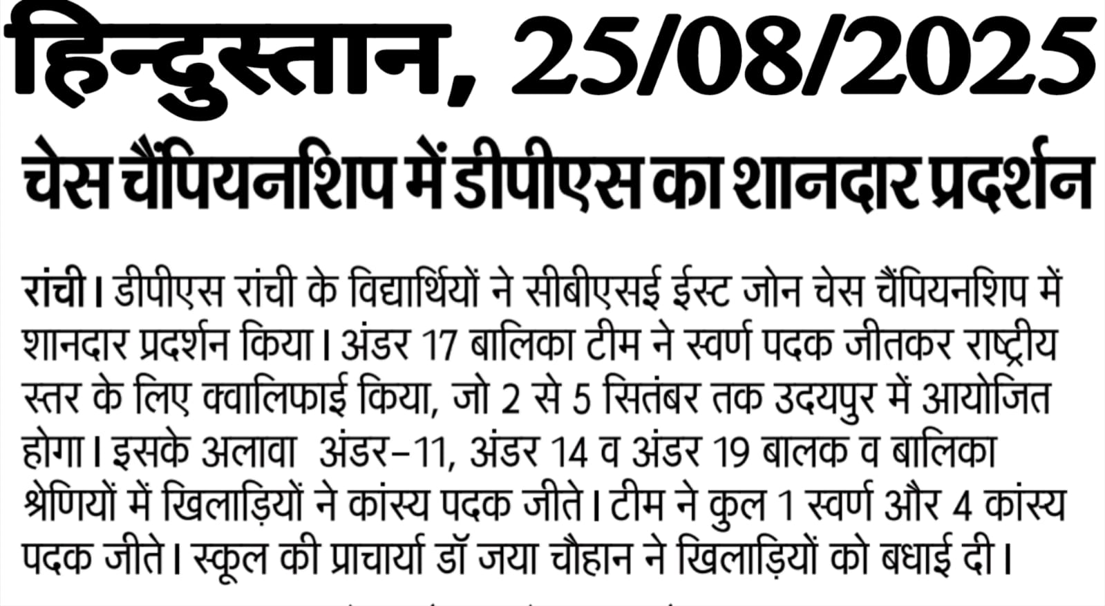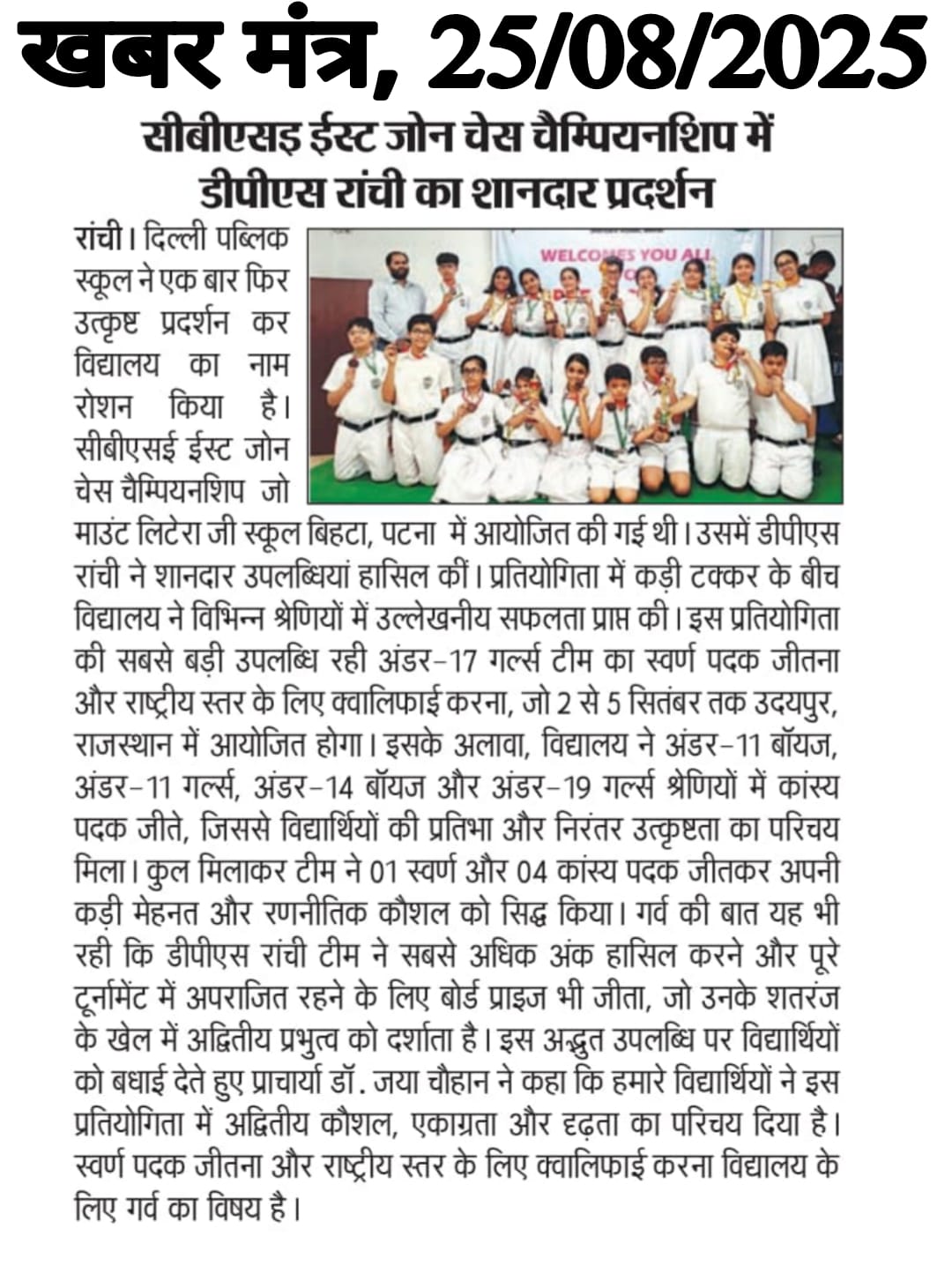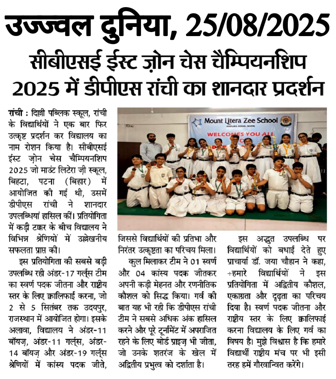 DPS Ranchi Shines at CBSE East Zone Chess Championship 2025