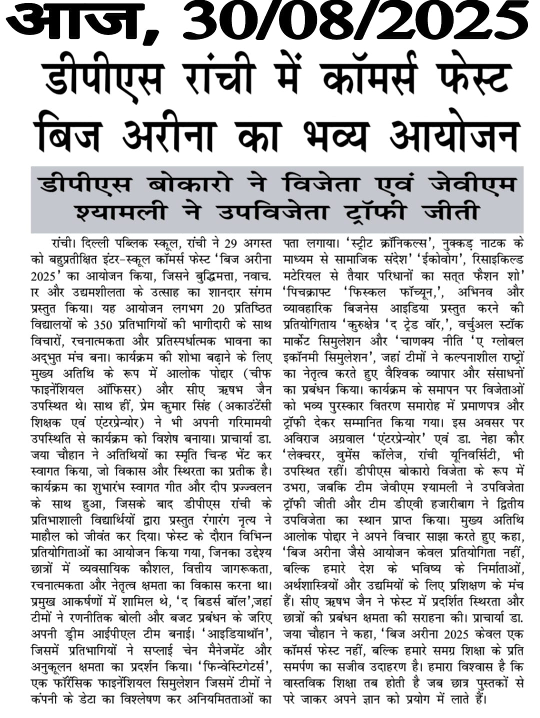 Commerce Fest - BIZZARENA 2025 at DPS Ranchi