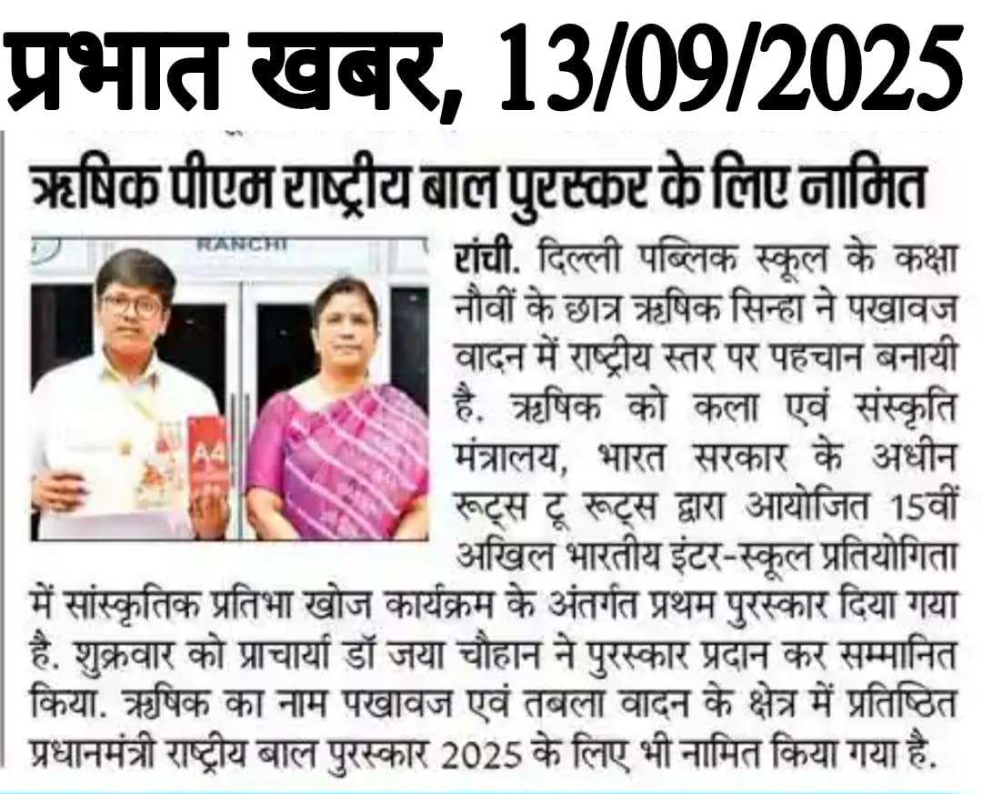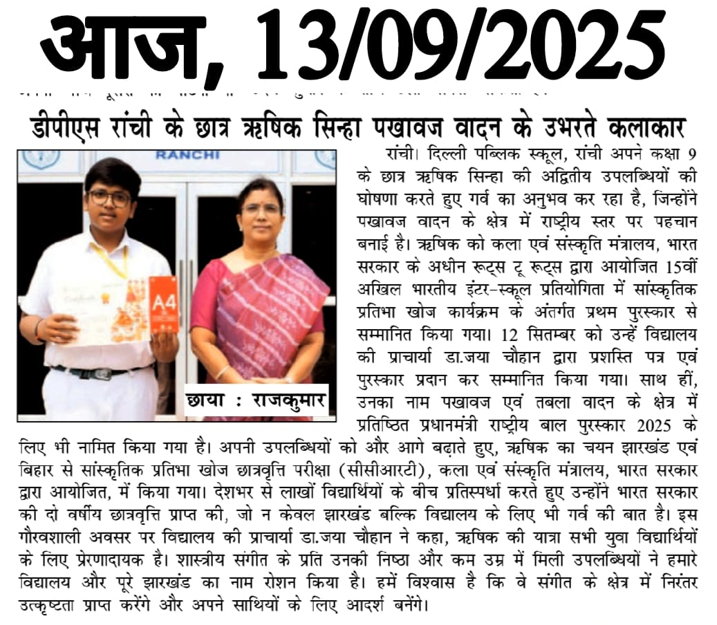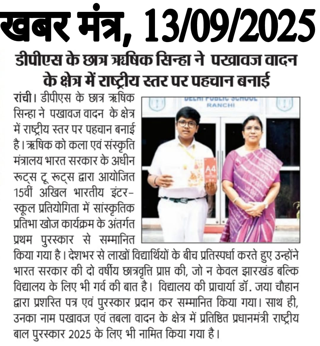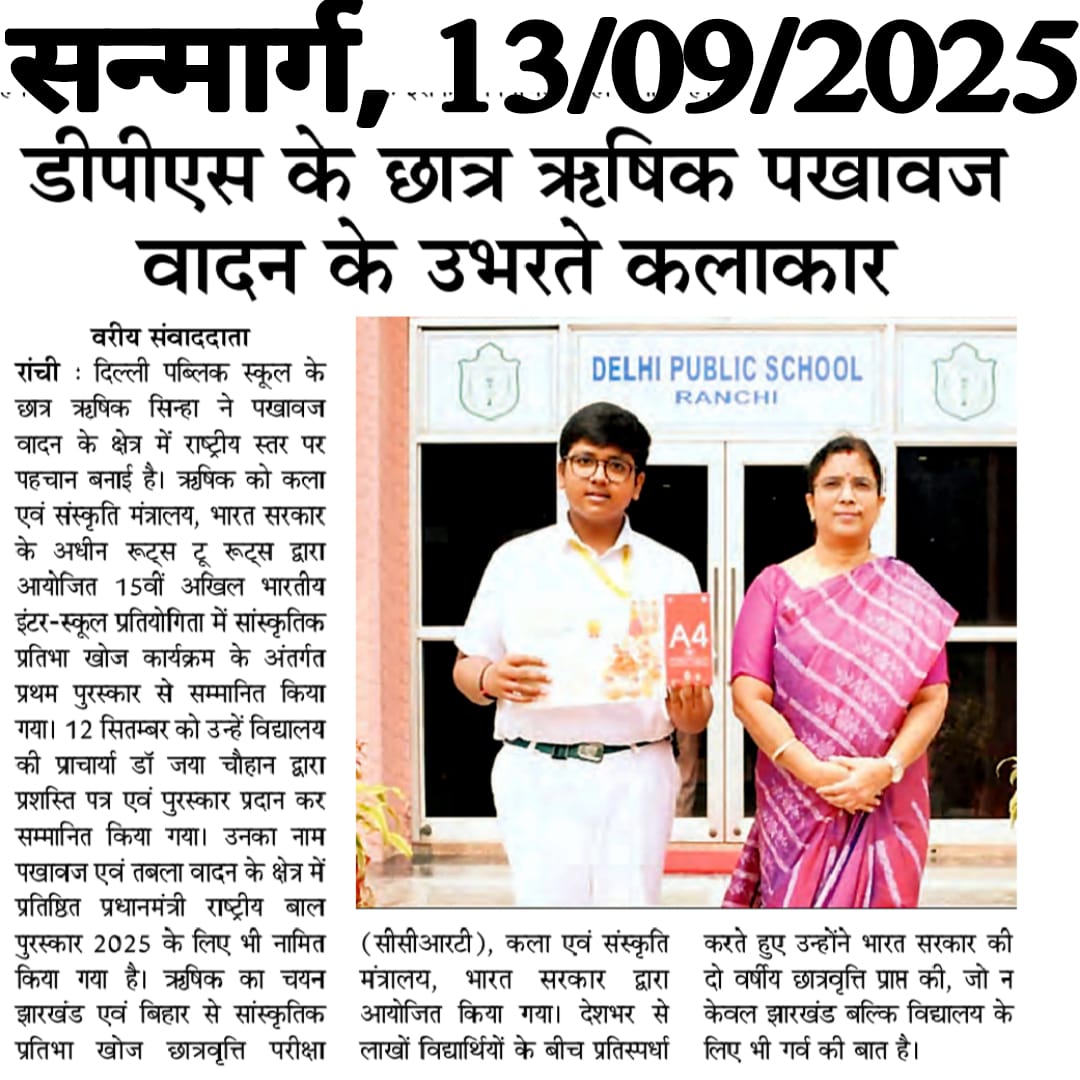 DPS Ranchi Student Hrishik Sinha Shines as Emerging Pakhavaj Artist