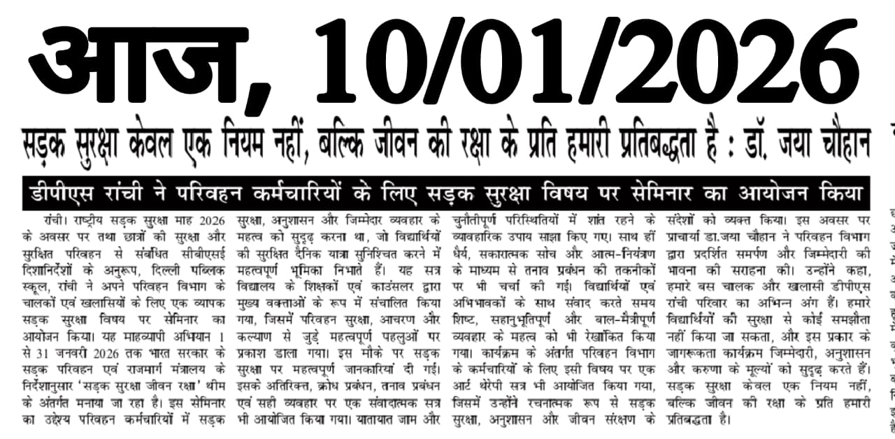 At DPS Ranchi, we have always believed that education is not merely about academics, but about building character, fostering creativity, and cultivating compassion. As we move forward together, I assure you that I will work hand-in-hand with our dedicated teachers, supportive parents, and our brilliant students to uphold the school’s legacy of excellence while also embracing new opportunities for growth and innovation.